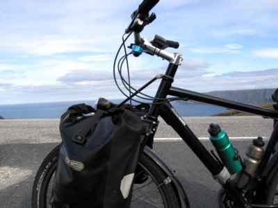 - Packtaschen: zwei Ortlieb Back Roller Classic, zwei Ortlieb Front Roller Classic, Ortlieb Packsack 70 l, Spanngurte