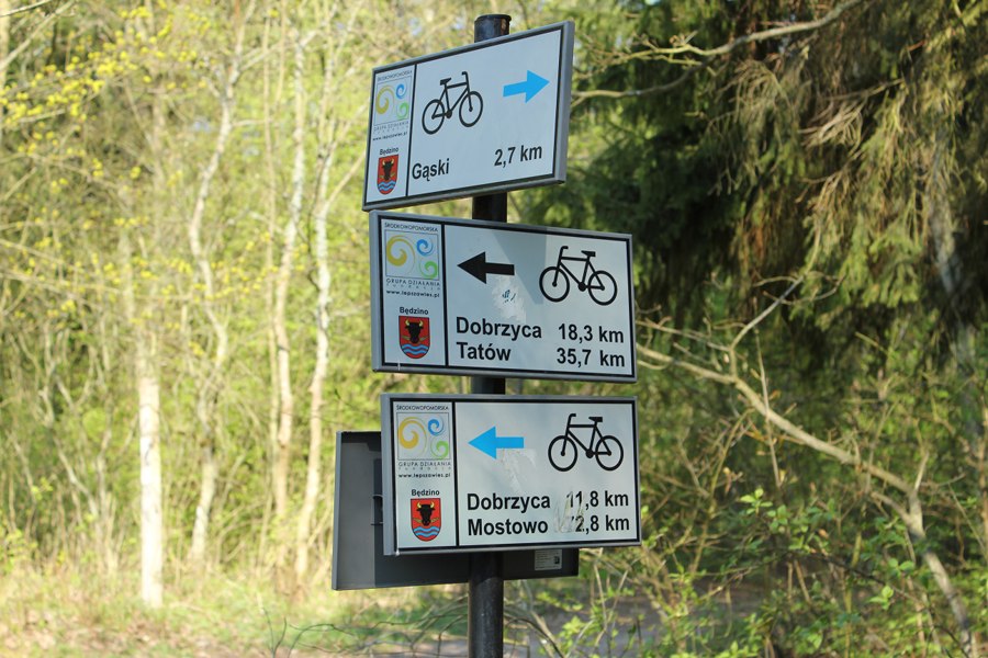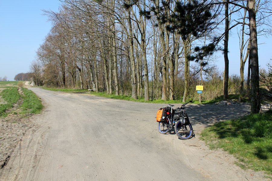 Bisher habe ich Glück mit dem Wetter gehabt. Fast ununterbrochen begleitet mich heller Sonnenschein, und Wolken sind rar. Die Temperaturen dümpeln um die 10-Grad-Marke herum, denn die Ostsee ist noch kalt und der Winter nicht lange vorbei. Pech habe ich mit dem Wind. Er bläst hier in der Regel von West nach Ost, nur wird die Regel seit Tagen missachtet. Mit Wucht kommt er mir entgegen, was besonders auf baumlosen Wegen in den weiten Agrarregionen Nordpolens der Fall ist. Doch ich will nicht jammern. Besser als Regen ist die Windbremse auf jeden Fall.