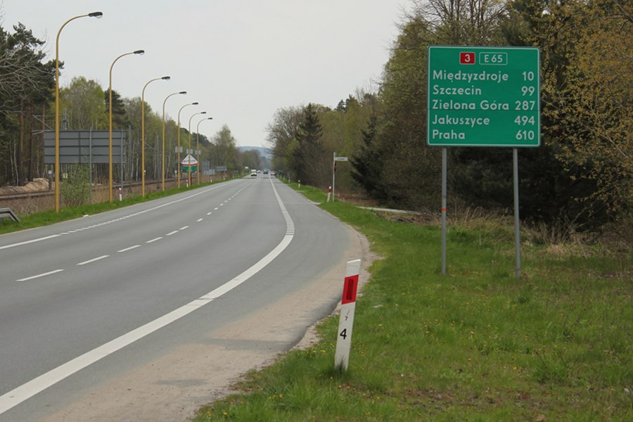Zwischen Pagorzelica und Trzebiatów waren selbst die polnischen Radwegplaner mit ihrem Latein am Ende. Offensichtlich ließ sich kein noch so wüster Trampelpfad durch die Äcker schlagen. So muss ich also rauf auf die Hauptstraße, im Fachjargon "unvermeidbare Streckenergänzung" genannt. Jetzt im April ist das bei spärlichem Verkehr kein Problem. In der Hauptsaison muss es aber die Hölle sein, wenn halb Polen zum Urlaub an die Ostsee reist. Wäre Polen China, wäre die Erdrotation gefährdet.
