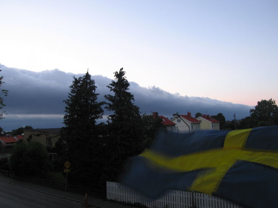 Nicht jede Etappe muss aufregend sein. Heute geht es von Skansund auf Mörkö nach Nyköping, und zwar durch überwiegend agrarisch geprägte Schon beim Zusammenpacken unserer Siebensachen zieht sich der Himmel zu. Aus kleinen Wolken wird eine dichte graue Decke, und von den morgendlichen Sonnenstrahlen ist immer weniger zu sehen. Bevor wir losradeln, ziehen wir vorsorglich die Regenklamotten an. Eine weise Entscheidung, denn kaum haben wir Borensberg verlassen, beginnt es auch schon zu tröpfeln. Und es ist durchaus entwicklungsfähig, denn phasenweise steigert sich das Tröpfeln in einen veritablen Landregen. Uns stört das nicht, denn wir haben Rückenwind! Beim Reiseradeln gilt, dass sonniges Wetter mit Gegenwind eindeutig negativer ist, als regnerisches Wetter mit Rückenwind.