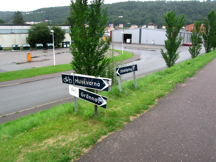 Jönköping (84.000 EW) den Hauch einer nüchternen Funktionalität aus. Und wie in Schweden auch recht üblich, hat man den Autoverkehr gerne bei sich in der Stadt und leitet die abgasschwangere E4 mitten hinein. Für uns ergibt sich dadurch die Schwierigkeit, irgendwie über die Autobahn zu kommen, da diese ausgerechnet zwischen Berghang und Vätternufer verläuft. Wir finden schließlich eine Fahrradbrücke, und radeln dann durch triste Industriegebiete auf das Zentrum zu.