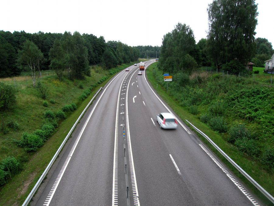 Schweden ist ein ausgesprochenes Autofahrerland. Das trifft besonders auf die Verkehrs- und Straßenplaner zu, die bei der Konstruktion der Fernstraßen ausschließlich die Belange der Blechkistenlenker im Visier haben. Dass auch Radfahrer die Dreistigkeit haben könnten, diese verkehrsoptimierten Asphaltandern zu benutzen, kommt diesem Benzinhirnen nicht in den Sinn.