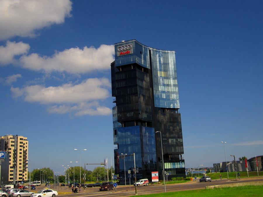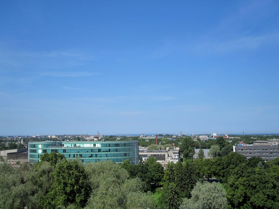 Pirita, wo wir den Fernsehturm besuchen wollen. Leider sind die Radwege im Zentrum der Stadt sehr dünn gestreut und auf der verkehrsreichen Narva maantee vollkommen verschwunden. Auch überwiegt hier unter den motorisierten Verkehrsteilnehmern die übliche Arroganz und Aggressivität gegenüber Radfahrern. Erst auf dem Radweg an der Strandpromenade haben wir unsere Ruhe vor den Benzinhirnen und ihren Blechkisten. Hier lässt sich bestens radeln, dazu ergeben sich schöne Panoramablicke auf den Stadtkern. Pirita selbst ist an sich weniger sehenswert. Hinter dem Yachthafen biegen wir ab und radeln auf der Kloostrimetsa tee in Richtung Fernsehturm. Es geht leicht bergan, dann befinden wir uns mitten in einem aufgelockerten Wald. Es folgen einige neu angelegte Wohngebiete aus flachen Designerhäusern, dann stehen wir vor dem