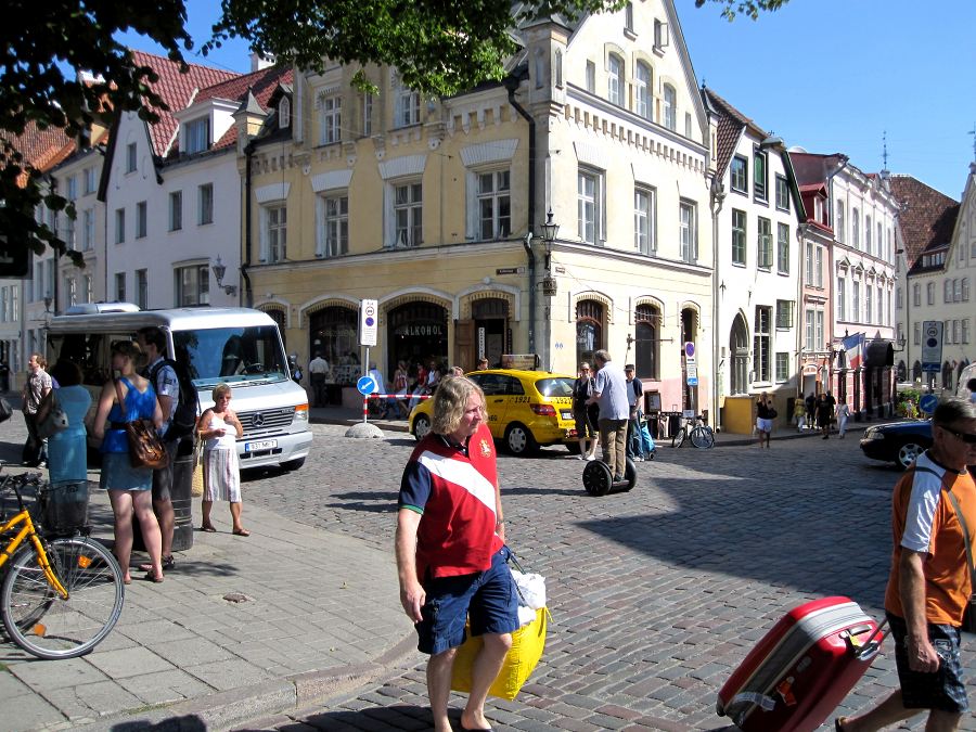 Unterstadt. Es ist sehr eng in den Gassen, und auf dem groben Kopfsteinpflaster wäre das Radeln ohnehin kein Vergnügen. Nach einigem Suchen finde ich die Touristeninfo, wo ich zu einer zentralen Hotelvermittlung geschickt werde (Booking Estonia). Alternativ könnte ich die Hotels auch persönlich abklappern, doch das erscheint mir als sehr mühselig. Denn die Regel für Tallinner Hotels lautet, dass der Preis mit zunehmender Nähe zur Altstadt steigt. Und zum Ziehen weiter Kreise um Tallinns Kern habe ich weder Lust noch Zeit. So trage ich der Dame meine Wünsche vor und betone, dass die Reiseräder sicher untergestellt werden müssen. Schnell werden wir fündig: Das Lilleküla-Hotell liegt zwei laue Kilometer außerhalb der Altstadt und ist mit umgerechnet 48 EUR / Übernachtung nicht allzu teuer. Trotzdem beschleicht mich der Verdacht, dass darin ein nicht unerheblicher Aufschlag für das Buchungsbüro enthalten ist.