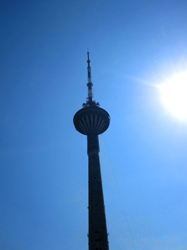 Fernsehturm (Teletorn). Er stammt noch aus sowjetischer Zeit, was man seiner leicht schroffen Architektur sofort ansieht. Leider wird das höchste Gebäude Estlands (314 m) gerade renoviert, so dass wir nicht auf die Aussichtsplattform dürfen, um mit ein wenig Glück bis hinüber nach Finnland gucken zu können.