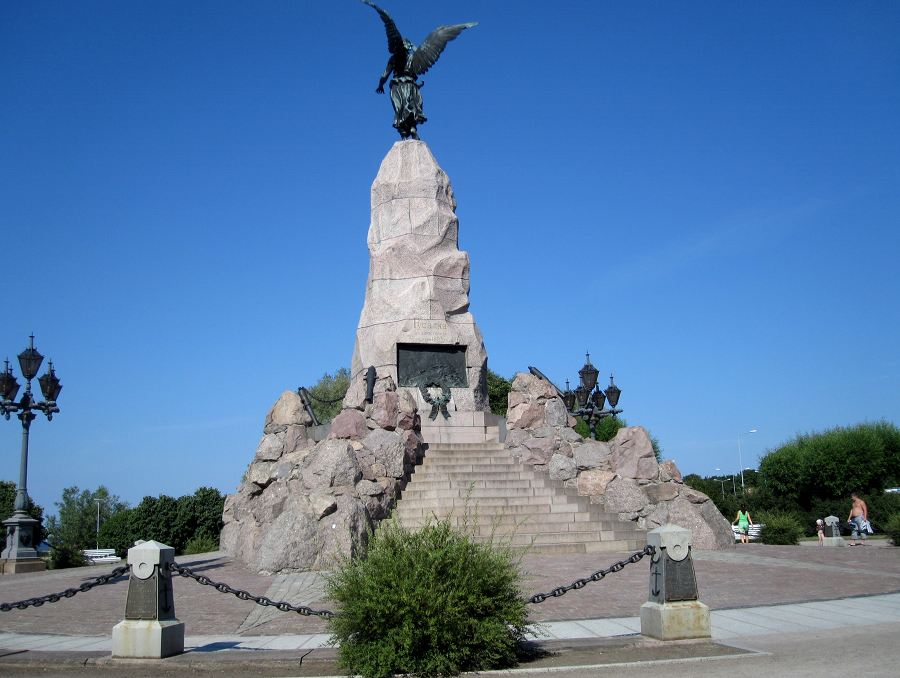 Russalka-Denkmal, das an den Untergang eines russischen Marineschiffes im Finnischen Meerbusen erinnert. Das Wetter meint es dabei so gut mit uns, dass wir vor der heißen Sonne ausnahmsweise mal den Schatten suchen - zumindest zum Essen.