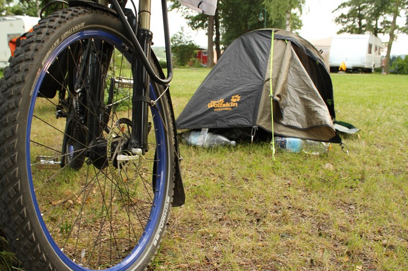 Henningsdorf wird es schließlich städtisch. Will heißen, Verkehr und Industrieanlagen nehmen so sprunghaft zu, wie die städtebauliche Attraktivität ab. Außerdem ist trotz angestrengtem Spähen nirgendwo ein Wegweiser zur Havel zu finden, wo immerhin der Radfernweg Berlin-Kopenhagen verläuft (übrigens auch eine Mogelpackung: eigentlich endet er schon in Rostock, der Rest soll per Fähre absolviert werden...). Und so schlage ich mich hinter der Berliner Stadtgrenze einfach in den Wald und finde nach erneutem Nachfragen endlich mein Nachtquartier, den Campingplatz "Bürgerablage" in