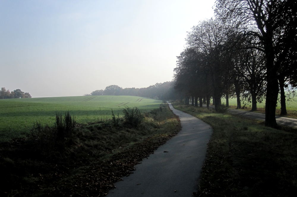 Es folgen Jessendorf und Schinn, dann bin ich in Lubow. Die Landschaft wirkt hier ein wenig eintönig, zudem nervt die nahe Autobahn. Dann verfahre ich mich und lande auf einer Trasse, die über das Wismarer Autobahnkreuz führt. Wieder einmal geht es streng bergauf.