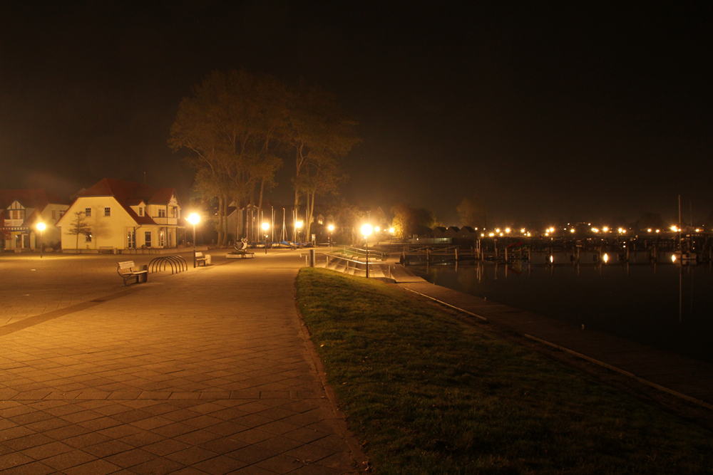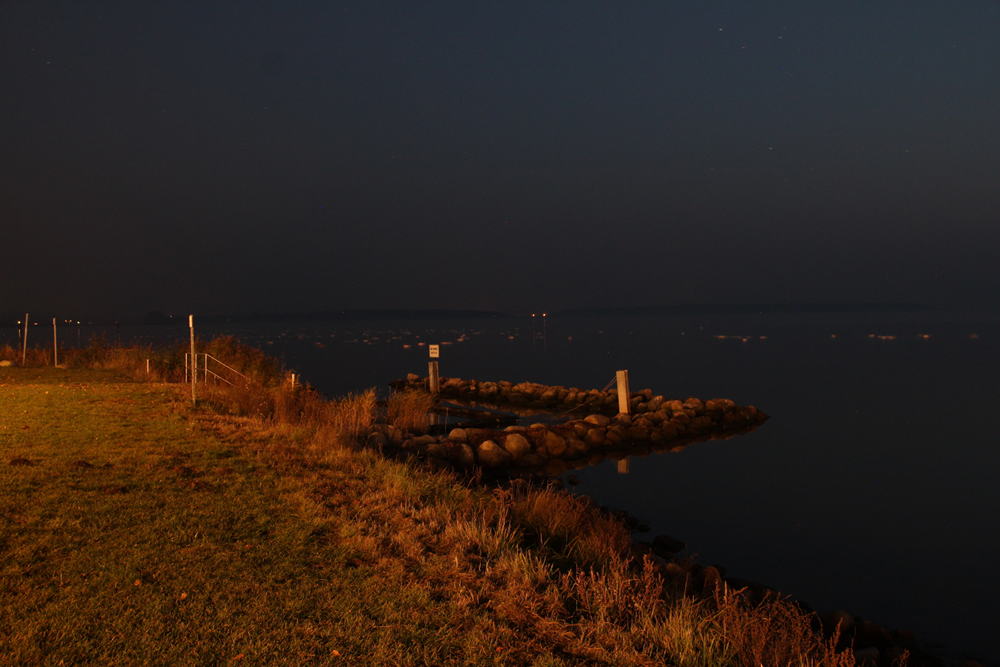 Abends sitze ich an Promenade und schaue hinüber zur Halbinsel Wustrow. Sie ist in Privatbesitz und wurde 1998 an die Fundus-Gruppe verscherbelt. Das ist die selbe Firma, die in Heiligendamm das Grandhotel betreibt. Dort ist man seit jeher bemüht, die Öffentlichkeit nicht allzu nah kommen zu lassen, damit die gutbetuchte Kundschaft nicht vom Anblick des Pöbels beeinträchtigt wird. Auch auf Wustrow haben Normalsterbliche keinen Zugang.