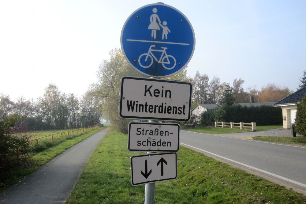 Nicht selten ist der Radweg in beinahe desolatem Zustand. Vor allem zwischen Stove und Blowatz ist die D-Route 2 eine ärgerliche Rüttelpiste. Und dann diese Schilder. Man wird nicht müde zu betonen, dass auf dem Radweg eben kein Winterdienst stattfindet. Mit anderen Worten ist der Ostseeradweg für die Verkehrsverantwortlichen derart uninteressant, dass man ihn nicht einmal vom Schnee zu befreien gedenkt. Schade, schade.