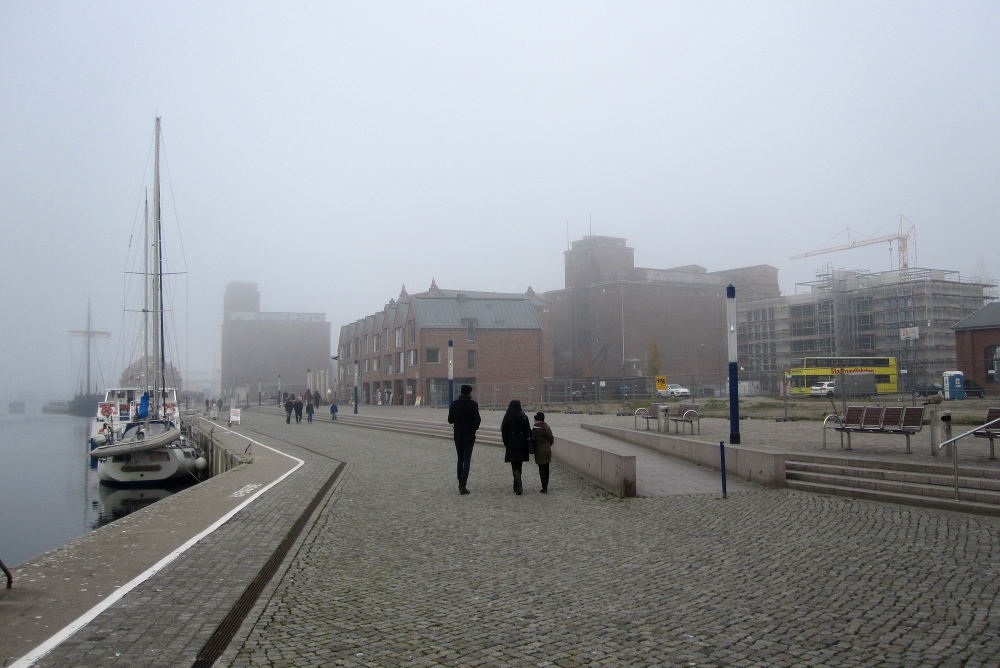 Ich bin mir bis heute nicht sicher, ob ich Grevesmühlen schön oder hässlich finden soll. Sicher ist, dass es von beidem etwas hat. Der allgegenwärtige Nebel trägt jedenfalls nicht zur Verbesserung des Eindrucks bei.