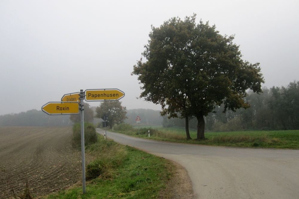 Eines dieser Dörfer hört auf den Begriff Papenhusen. Hier scheint es Bedingung für die Bewohner zu sein, einen scharfen Hund an einer Leine oder im Zwinger aufzubewahren. Aus jedem Hof kläffen mich die Köter an.