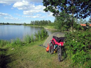 Ab Køge reiht sich entlang der 151 ein Kaff an das nächste. Ich befinde mich nun im Großraum Kopenhagen, das noch knapp 40 Kilometer von mir entfernt ist. Auf einem großzügigen Radweg pedaliere ich gut gelaunt auf die dänische Hauptstadt zu, betrachte ihre wenig attraktiven Vororte und halte Ausschau nach einem geeigneten Campingplatz. Bei Hundinge ist der erste, doch der liegt an der Hauptstraße und scheint besonders beliebt bei kinderreichen Familien zu sein. Ich radele weiter. In Ishøj, kurz vor der Kopenhagener Stadtgrenze, werde ich schließlich fündig und kann mein Zelt auf einem abgelegenen Seitenweg direkt am Ufer eines Sees aufbauen. So komme ich auch nicht den unzähligen Wohnmobilen in die Quere, die jeden Winkel des Platzes besetzt halten.