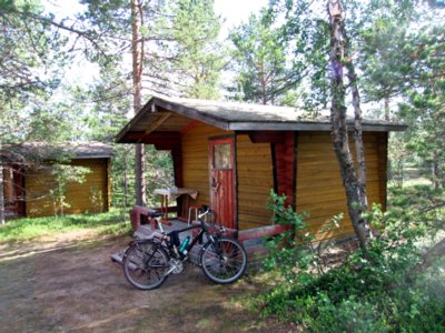 Ounasloma Oy, gleich der erste Platz nach der Einfahrt in den Ort aus Süden). Kaum habe ich mich in der Hütte häuslich niedergelassen, beginnt die Sonne zu scheinen. Ich werte das als gutes Zeichen und schwelge den Rest des Tages in ungewohntem Luxus.