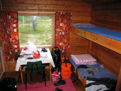 Wie immer wache ich gegen sechs Uhr auf. Der erste Blick aus dem Fenster zeigt einigermaßen gutes Wetter für die Etappe ins norwegische Kautokeino. Es ist viel zu schade, diese schöne Hütte so früh zu verlassen. Deshalb döse ich noch ein wenig im bequemen Bett und frühstücke anschließend recht ausgiebig. Erst um zehn Uhr radele ich schließlich los.