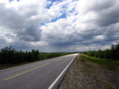 Aus einigen Wolken kann ich aus der Entfernung heftigen Regengüsse niedergehen sehen. Immer wieder richte ich mich darauf ein, nass zu werden, doch zum Glück führt die Straße jedes Mal an den Regenwolken vorbei.