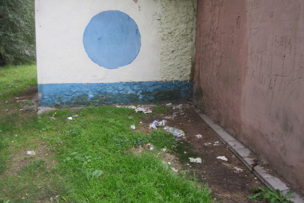 Wilde öffentliche Toiletten finden sich zuweilen an den Rückseiten von Wartehäuschen
