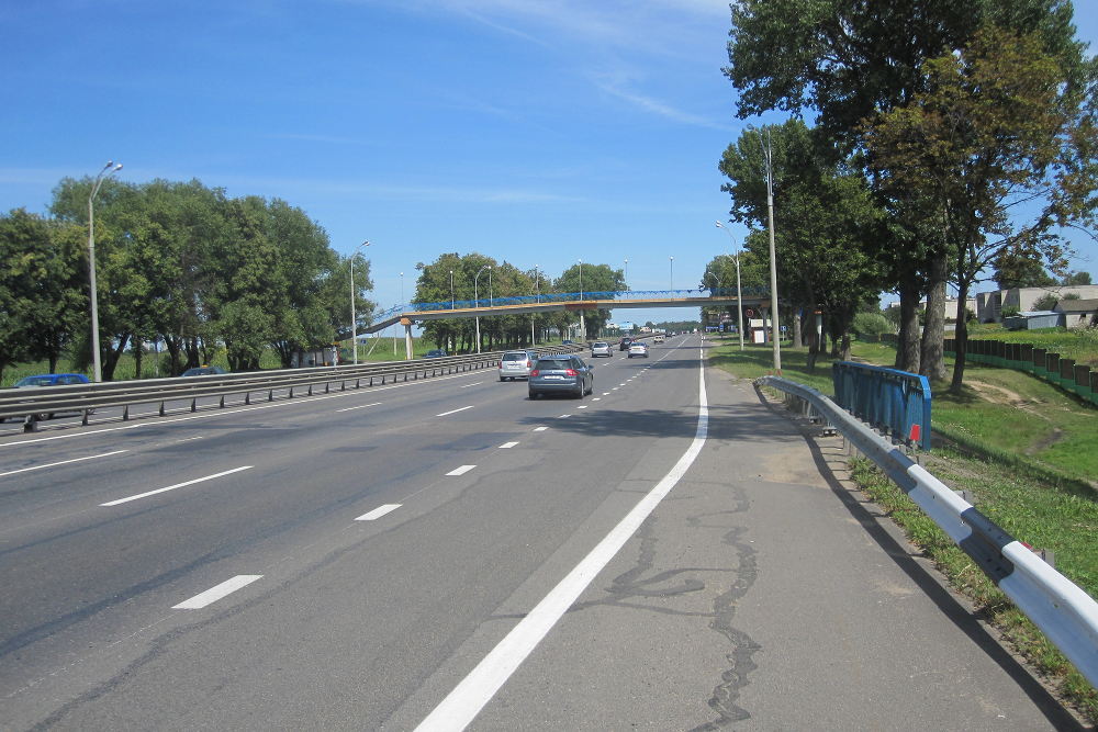 Wir müssen ein wenig suchen, um den Zubringer zur P1 nach Minsk zu finden. Dann radeln wir auf dem Seitenstreifen einer mehrspurigen Straße, die uns nach wenigen Kilometern auf die "richtige" P1 entlässt. Und tatsächlich: die P1 ist hier eine sechsspurige Autobahn mit jeder Menge Verkehr. Ob dort auch Radverkehr erlaubt ist, wissen wir nicht.