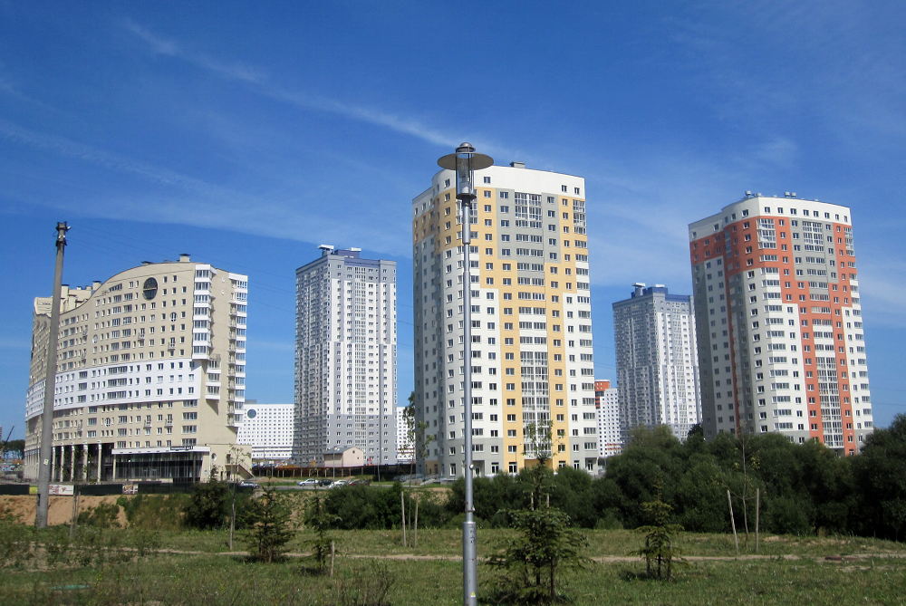 Minsk auf. Die Stadt beginnt nicht langsam und schleichend, wie etwa Hamburg oder Berlin. Nein, Minsk beginnt schlagartig. Mit einem Male erscheint am Ende der Ackerflächen eine riesige Häuserwand. Einfach so, fast wie aus dem Nichts.