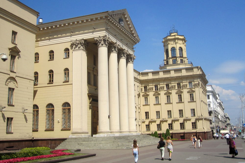 - Oktoberplatz (Oktyabrskaya): Dieser weite Platz beherbergt den Kulturpalast (erbaut 1954), das Museum für Kriegsgeschichte sowie an seinem Südende die Zentrale der Kommunistischen Partei.