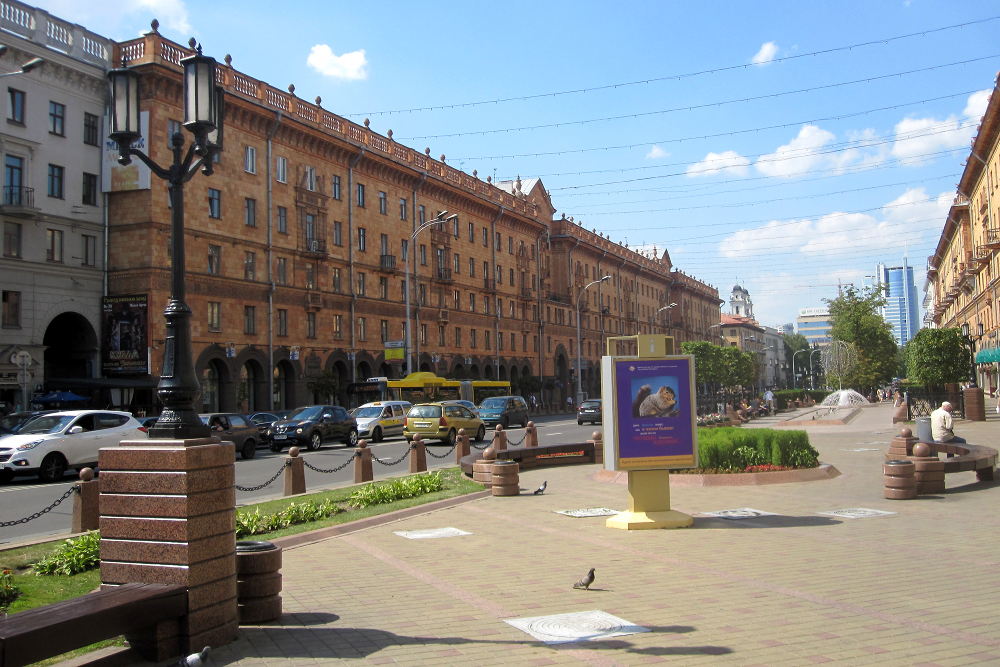 - Unabhängigkeits-Boulevard: Die zentrale Prachtstraße der Stadt verläuft vom Unabhängigkeitsplatz bis zum Siegesplatz. Hier befinden sich die wichtigsten repräsentativen Bauten, wie etwa die KGB-Zentrale, das Kaufhaus GUM oder der Palast der Republik.