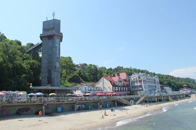 Dennoch ist Svetlogorsk ein sehr angenehmes Städtchen mit viel Wald und guter Luft. Auch die Seepromenade, die in den unteren Etagen der Steilküste liegt, lädt durchaus zum Verweilen ein. Es gibt auffällig wenig touristischen Nepp, und selbst die in dieser Region unvermeidlichen Verkaufsstände mit Bernsteinartikeln halten sich in engen Grenzen. Allerdings ist jetzt, Mitte Juni, noch Vorsaison. Viele Geschäfte haben noch nicht geöffnet, und in Svetlogorsks Einkaufsmeile werden viele Läden noch für die Hauptsaison vorbereitet.