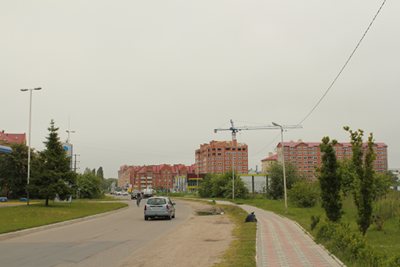 Cranz geht es auf einer etwas holprigen Landstraße. Zelenograskd bedeutet soviel wie "Grüne Stadt", was so gar nicht auf die vielen Appartementhochhäuser passen will. Als Haus-Seeband der Kaliningrader wird hier fleißig gebaut, was der kleinen Stadt jegliche Atmosphäre raubt. Wir widmen der Ortschaft keinen zusätzlichen Aufenthalt, sondern radeln gleich auf den Abzweig zur Nehrungsstraße.
