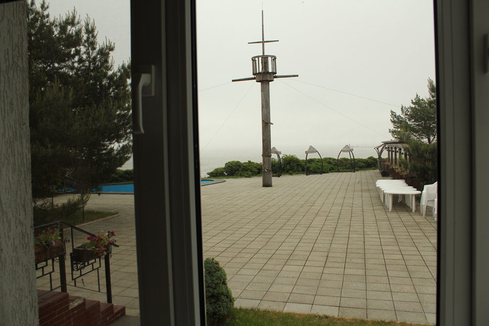 Atrimo und ist mit drei Sternen angeblich das beste Haus der Umgebung. Ablesen lässt sich das am stolzen Zimmerpreis von fast 100 Euro pro Nacht. Dennoch scheint man im Atrimo der Sparfuchs umzugehen: ein Hotelschild fehlt und im Bad das Abflussrohr des Waschbeckens. Egal, dann putzen wir uns halt die Zähne unter der Dusche. Davon abgesehen logiert es sich in den Räumen der ehemaligen deutschen Jugendherberge sehr angenehm. Das Kurische Haff liegt kaum einen Steinwurf von unserem Zimmer entfernt. Sein leises Rauschen wiegt uns sanft in den Schlaf.