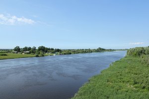 Russ) liegt exponiert. Hier teilt sich die Memel (Nemunas) in die beiden Mündungsarme Atmata und Skirvytė auf. Letzterer umfließt Rusnė im Südosten und bildet gleichzeitig die Grenze zur Kaliningradska′ja Oblast. Zum Haff hin breitet sich die Memelinsel aus, die von den beiden Memelarmen gebildet wird. Alles Land, das regelmäßig von Überschwemmungen heimgesucht wird.