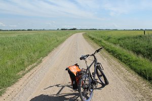 Pokallna). Hier ist Straße unbefestigt, lässt sich aber gut beradeln. Es geht durch Felder, dann durch Wiesen und Weideland. Auch in Pokallna ist nicht viel los. Dafür liegt das Dorf idyllisch am gleichnamigen Fluss. Nur ein Bauer ist aktiv und macht mit seinem Traktor reichlich Lärm.
