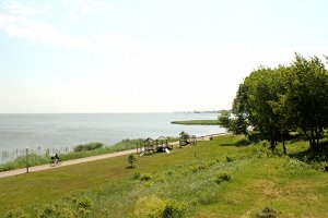 Kuwertshof) scheint man am Ende der Welt angekommen zu sein. Das Dorf am Südende des Atmata beherbergt ein altes Schöpfwerk sowie einen Leuchtturm. Ansonsten liegt eine dösige Ruhe über dem Örtchen. Wir radeln weiter in Richtung