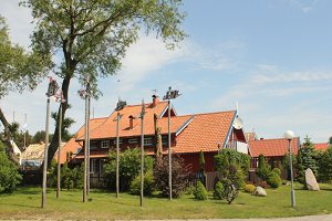 Nidden. Im Vergleich zur russischen Seite soll es hier geradezu hektisch und trubelig zugehen; ein Hort des baltischen Massentourismus. So zumindest sehen das einige Reiseführer. Sicher ist im Vergleich zur benachbarten Exklave mehr los. Aber trotz aller Beliebtheit und wohl recht passabler Übernachtungszahlen wirkt Nida immer noch wie ein kurisches Fischerdorf. Nur eben, dass es ein paar Restaurants mehr gibt. Größere Hotelbauten sucht man vergebens, dafür wimmelt es von typischen Kurenhäusern aus rot gefärbtem Holz. Es geht also durchaus gemütlich und beschaulich zu in Nida.