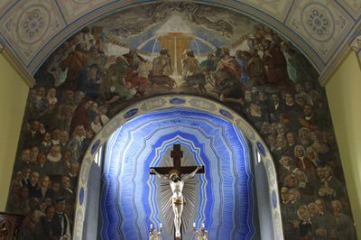 Vorher dürfen wir uns aber noch die evangelische Kirche anschauen und werden dabei von einer christlichen Missionarin begleitet, die uns die Einzelheiten erklärt (war Bestandteil der Stadtbesichtigung der Bootstour). Die gute Frau wusste zwar viel zur Kirche zu erzählen, war aber gar nicht gut auf "Zigeuner" zu sprechen, die vor allem im Winter lieber Sozialleistungen kassierten, als zu arbeiten. Auch waberte stets ein revanchistischer Ton der Marke "das ist ja eigentlich alles deutsch hier" mit. Christentum, Rechtsradikalismus und Faschismus haben schon immer gut zusammen gepasst.