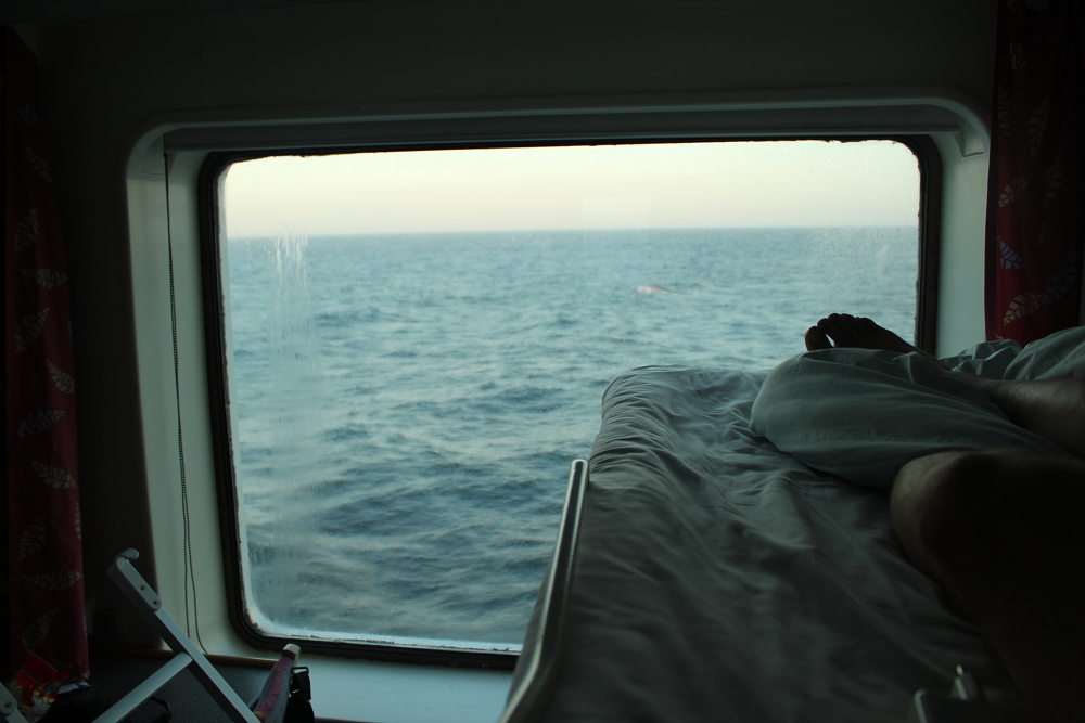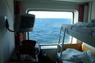 Um 23 Uhr müssen wir gehen, das Restaurant macht zu. Die letzten Stunden dösen wir noch im Wartesaal des Fährterminals vor uns hin, dann geht es rauf aufs Schiff. Es folgen anderthalb Tage mit bester Ostseesicht - unsere Außenkabine hat ein riesiges Außenfenster. Und wenn man von den Kojen aus nach draußen gucken kann, braucht man die Kabine nur zu verlassen, um im Dutyfreeshop einzukaufen. Welch ein Luxus.