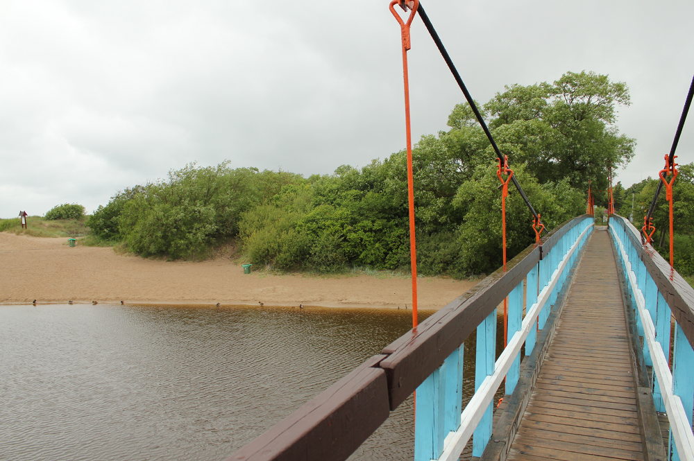 Über diese enge Hängebrücke wird in Šventoji der R10 geführt