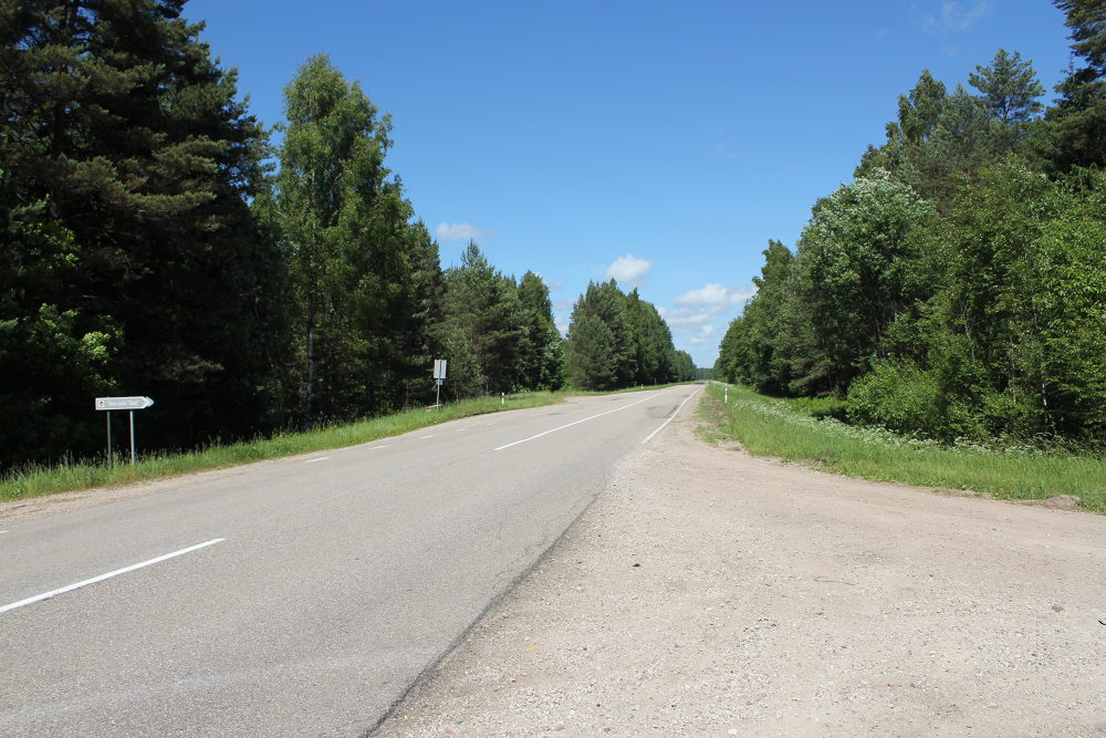 An der lettischen Grenze ändert sich plötzlich der Fahrbahnbelag. Nun ist es vorbei mit dem glatten Asphalt. Es folgt der für lettische Straßen typische Flickenteppich aus groben Ausbesserungen, Schlaglöchern und anderen Unebenheiten. Kurzum, es holtert und poltert, rüttelt und wackelt. Trotzdem, auf der A11 ist kaum was los, und dazu scheint die Sonne.