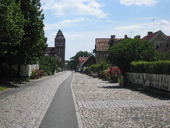 Åhus. Die kleine Hafenstadt begeisterte uns durch ihr schönes Stadtbild. Weniger begeistert waren wir über die zwar vorhandenen, aber irreführenden Rad-Wegweiser. Mangels Alternativen nahmen wir wieder die 118, die aber diesmal keinen Radweg mehr hatte, dafür mit massig Verkehr aufwartete. Es hätte wohl einen parallel zur Landstraße und im Wald verlaufenden Radweg gegeben. Doch dank der seltsamen Beschilderung blieb uns nur eine Ahnung davon. Bei jedem neuen Örtchen suchten wir nach einem rettenden Alternativweg zur nervigen 118. Erst in