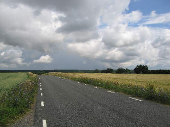 Tomellila machten wir Frühstückspause und radelten schließlich ins südschonische Agrarland. Um die lebensgefährliche Fernstraße 19 zu umgehen, benutzten wir hierzu ausnahmslos Nebenwege, die für Radfahrer gut ausgeschildert waren ("gelber Radweg"). Während die Landstraße relativ eben verlief, mussten wir Radler uns dann über steile und schlechte Wege quälen. Bis Ystad ging es durch eintönige und von weiten Feldern geprägte Landschaften. Wegen fehlender Wälder blies der Wind hier heftig und natürlich von vorn.