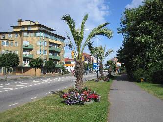 Trelleborg. Die meisten Touristen kommen hier in Schweden an oder verlassen das Land über die großen Fähren, kaum einer bleibt aber in der Hafenstadt. Boshafter Weise könnte man sagen: zu Recht. Trelleborg ist grau und kaum sehenswert, obgleich es auch ein paar Attraktionen gibt und der Stadt bei besserem Wetter bestimmt auch schöne Seiten abzugewinnen wären. Dafür wartet Trelleborg mit einer Palmenpromenade auf, was in diesen Breiten eine Kuriosität ist. Die Erklärung: Weil die Stadt die südlichste Schwedens ist, kam man irgendwann auf die Idee, zur Unterstreichung dieser Tatsache Palmen zu pflanzen. Im Winter kommen sie freilich in Gewächshäuser.