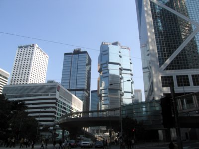 Hong Kong und Shanghai Bank. Obwohl "nur" 179 Meter hoch, galt das von Norman Foster entworfene Hochhaus lange Zeit als teuerster Bau der Welt (670 Mio. US-$). Als einzigartige Besonderheit ist es aus Modulen zusammengesetzt, die in London fabriziert, nach HK-Island transportiert und dort zusammengesetzt wurden. Theoretisch lässt sich der Bau wieder auseinandernehmen und an einem anderen Ort neu aufbauen. Darüber hinaus verfügt das Gebäude über ein 52 Meter hohes Atrium, das eine Schalterhalle über einem Glasgewölbe beherbergt, das das Atrium nach unten abschließt. Um geomantischen Erfordernissen gerecht zu werden, wurde der Eingang ins Atrium hoch genug gehalten, um einem Drachen den Eintritt zu ermöglichen. Ebenso sind die in das Gebäude führenden Rolltreppen schräg installiert, so dass Geister sie nicht benutzen können. Es erstaunt immer wieder, wie nah in Hong Kong Hochtechnologie und traditioneller Aberglaube beieinander liegen.
