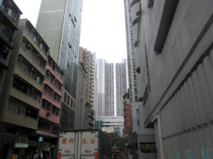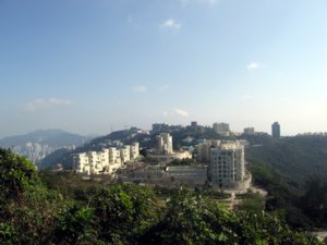 Nach knapp zehn Kilometern entspanntem Marsch durch eine empfehlenswert schöne Landschaft erreichen wir mit der Universität im Westen HK-Islands wieder die Stadt. Auf immer noch sehr steilen Straßen laufen wir durch die in den Berg hineingebauten Wohngebiete der Midlevels. Immer wieder erstaunt uns die Höhe der Wohnhochhäuser, die teilweise 200 Meter überschreitet. An gesicherten Eingangsbereichen sowie an dem durchaus gepflegten Eindruck der Gebäude sehen wir, dass hier Bessergestellte Leute wohnen.