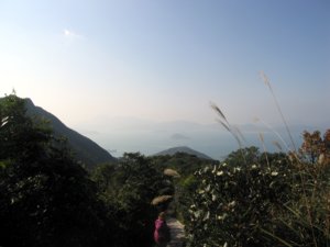 Gouvernor's Walk, der kurz vor dem Peak Garden in Richtung Lugard Rd. abzweigt. Der sehr beschauliche und schmale Pfad windet sich an der Südseite des Peaks langsam nach hinab. Panaoramaausblicke ergeben sich diesmal auf die andere Seite hinab nach Aberdeen und auf die umliegenden Inselchen. Irgendwann mündet er in die Harlech Rd., wo viele Hong Konger unterwegs sind und ihrer Lieblingsbeschäftigung an freien Tagen nachgehen, dem Grillen. Analog dazu gibt es im grünen Hinterland jede Menge Grillplätze. Überhaupt ist es erstaunlich, wie schnell die Riesenstadt aufhört und in üppige Vegetation der angrenzenden Wälder übergeht. Die Wandermöglichkeiten hier sind, gemessen an der Größe der Insel, extrem gut. So zieht sich der