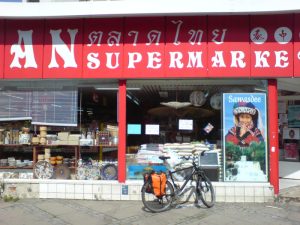 Km 78 - 83: Guter Dinge und erleichtert pedaliere ich wieder zurück nach St. Georg. Hier liegt, fast im Schatten der namensgebenden St.-Georgs-Kirche, der thailändische Asian-Supermarket. Voller Erwartungen stöbere ich durch die engen Gänge, finde aber kein Krabbenpulver. Eine Nachfrage beim Personal hat zum Ergebnis, dass ich umsonst hierher geradelt bin. Zum Ausglich kaufe ich paar andere Sachen, insbesondere rote Currypaste zum Zubereiten scharfer Currysuppe mit Gemüse auf Basis von Kokoscreme - lecker. Hier begehe ich aus purem Übermut einen kleinen Fehler.