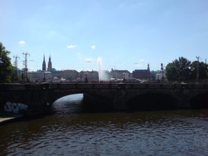 Km 75 - 78: Bei knapp 30 Grad Lufttemperatur radele mitten hinein ins Herz Hamburgs. Allerdings besitzt die Hansestadt mehrere Herzen, sprich Stadtzentren. Mich interessiert heute nur die unmittelbare Bahnhofsnähe, denn hier, im Zentrum St. Georgs, befindet sich der Asia-Supermarket, der hoffentlich mein ersehntes Krabbenpulver führt. Doch zunächst muss ich ein anderes dringendes Bedürfnis eher körperlicher Art befriedigen. Das ist nicht leicht in einer Großstadt, in der man für derartige Unternehmungen gerne Geld verlangt (besonders in St. Georg...). Ich komme zu dem Schluss, dass das altehrwürdige Hauptgebäude der Hamburger Universität ein guter Ort für ein kostenloses Wasserlassen darstellt, schließlich habe ich dort ein paar Jahre studiert und neben Hirnschmalz auch Semestergebühren gelassen.
