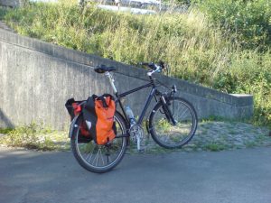 Km 83 - 95: Wenn man schon aus dem kleineren Lübeck so lange braucht, um die aus der Stadt herauszukommen, findet das gleiche Unternehmen in Hamburg in der obersten Liga statt. Wegen der miesen Radwege an der B75 in Volksdorf, verlasse ich die Stadt diesmal über die B434. Über die Bramfelder Straße geht es mit minimaler Steigung durch Uhlenhorst nach Barmbek. Hier muss ich eine kleine Rast einlegen und versorge mich in einem Kiosk erst mal mit Wasser. Wie es scheint, habe ich immer wieder Schwierigkeiten, mich an die Goldene Regel zu halten, den Wasserhaushalt auszugleichen, bevor quälender Durst aufkommt. Und das Bier hat auch nicht gerade zu einer Besserung der Situation beigetragen.