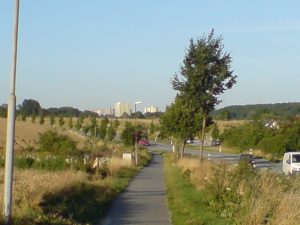 Km 53 - 65: Nach der Durchquerung des geschäftigen Ahrensburg geht es über die B75 schnurstracks auf Hamburg zu. Erst folgt eine weite Ackerfläche, doch an ihrem Ende sind bereits die Schornsteine der Hansestadt zu erkennen. Ziemlich genau bei Kilometer 60 erreiche ich die Stadt- und Landesgrenze. Die mit über 1,7 Millionen Einwohnern immerhin zweitgrößte Stadt der Bundesrepublik beginnt allerdings schleppend mit dem halbländlichen Stadtteil Volksdorf. Der Radweg entlang der Bundesstraße ist in einem erbärmlichen Zustand, und es rüttelt und schüttelt mich auf jedem Meter. Überhaupt scheint es hier, am Tor zum Tor zur Welt, keine gepflasterten Bürgersteige zu gegeben. Doch schnell nehmen Urbanität und Verkehrsdichte zu. Spätestens am Beginn des Stadtteils Rahlstedt haben die ländlichen Randgebiete ein Ende genommen und die Großstadt hat mich geschluckt - endlich!