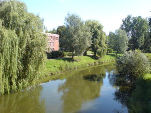 Km 13 - 33: Die Sonne scheint und die Landschaft ist lieblich, was will man mehr. Nach Klein Weserberg bemüht sich die Topograhie um die Ausbildung leichter Hügel. In Barnitz sind erste und für Norddeutschland recht beachtliche Steigungen zu bewältigen. In Meddewade folgt der zweite, diesmal sehr langgezogene Anstieg. Die gesamte Ortschaft zieht sich entlang einer stetig bergauf weisenden Hauptstraße. Zum Ausgleich kann ich hinter dem Ortsschild mit Tempo 40 in die ersten Stadtteile von Bad Oldesloe hineinrollen. Die Kleinstadt (ca. 25.000 EW) ist Verwaltungssitz des Landkreises Stormarn, der zwischen der kreisfreien Stadt Lübeck und Hamburg liegt.